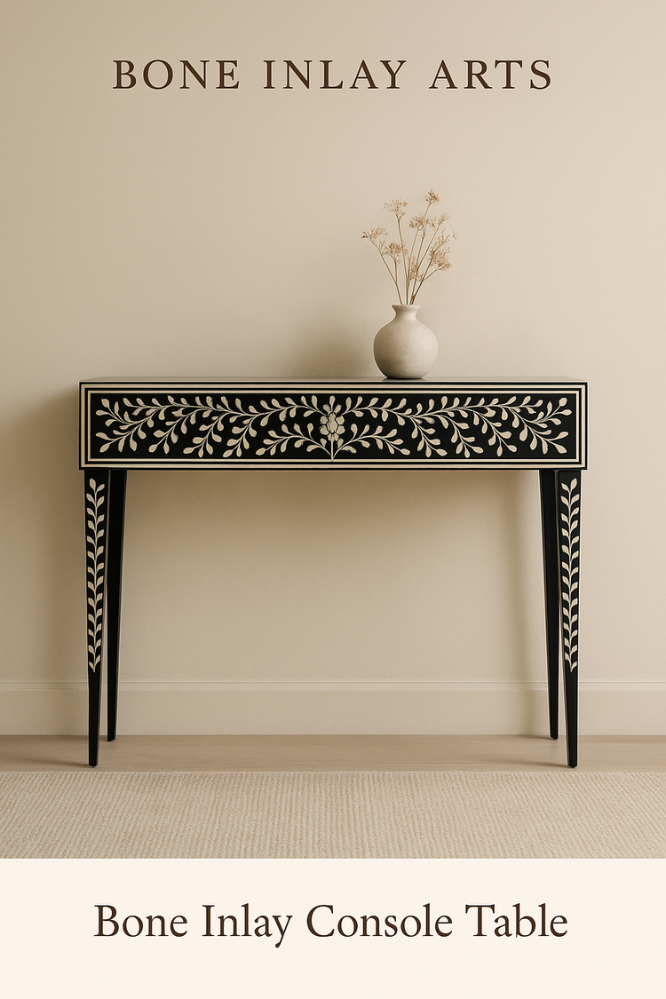 Handcrafted Black & White Bone Inlay Home Decor Console Table | Entryway Console | Bedroom Storage OrganizerRegular price $2,199.00 USDSale price $2,199.00 USDUnit price per