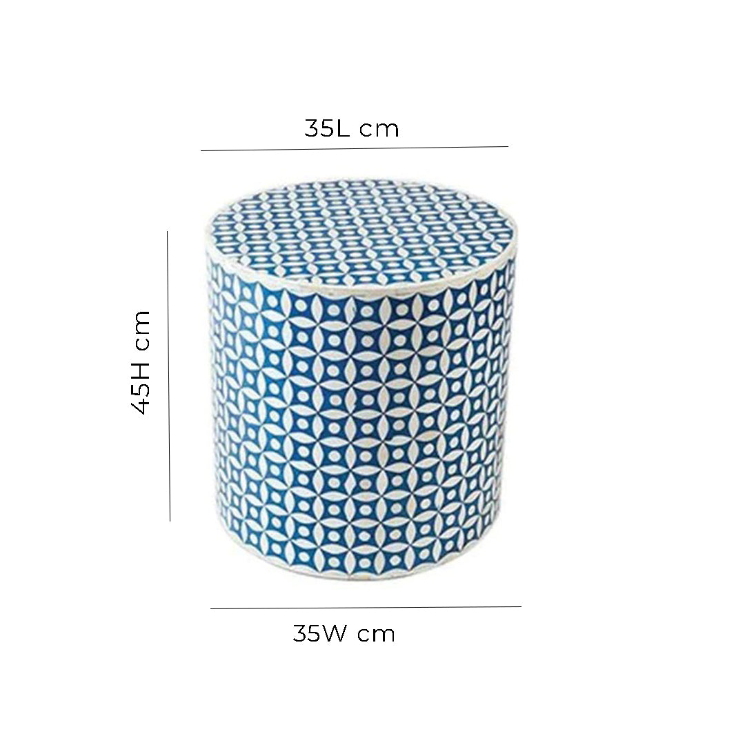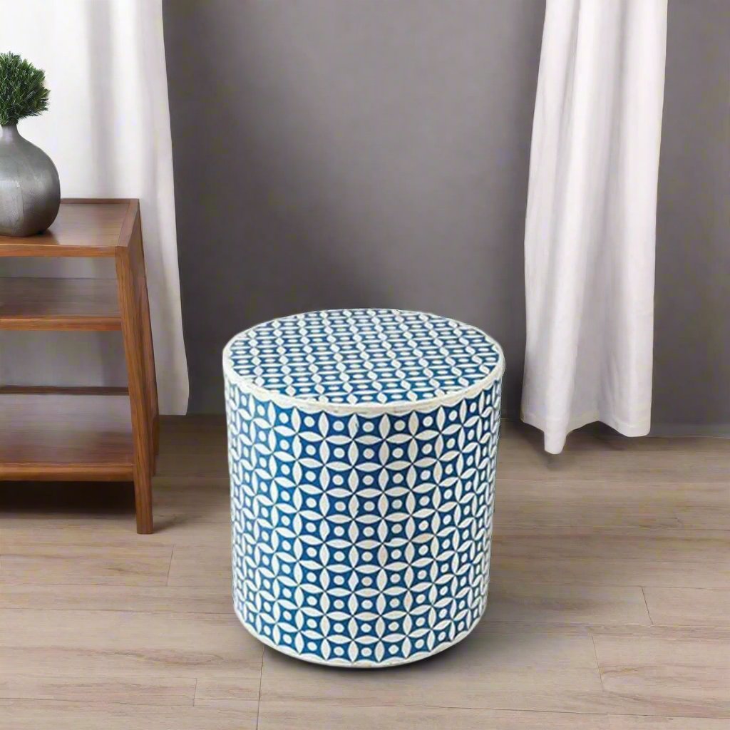Our Blue Bone Inlay Round Stool is an elegant piece that perfectly blends the beauty of bone inlay in geometric pattern.