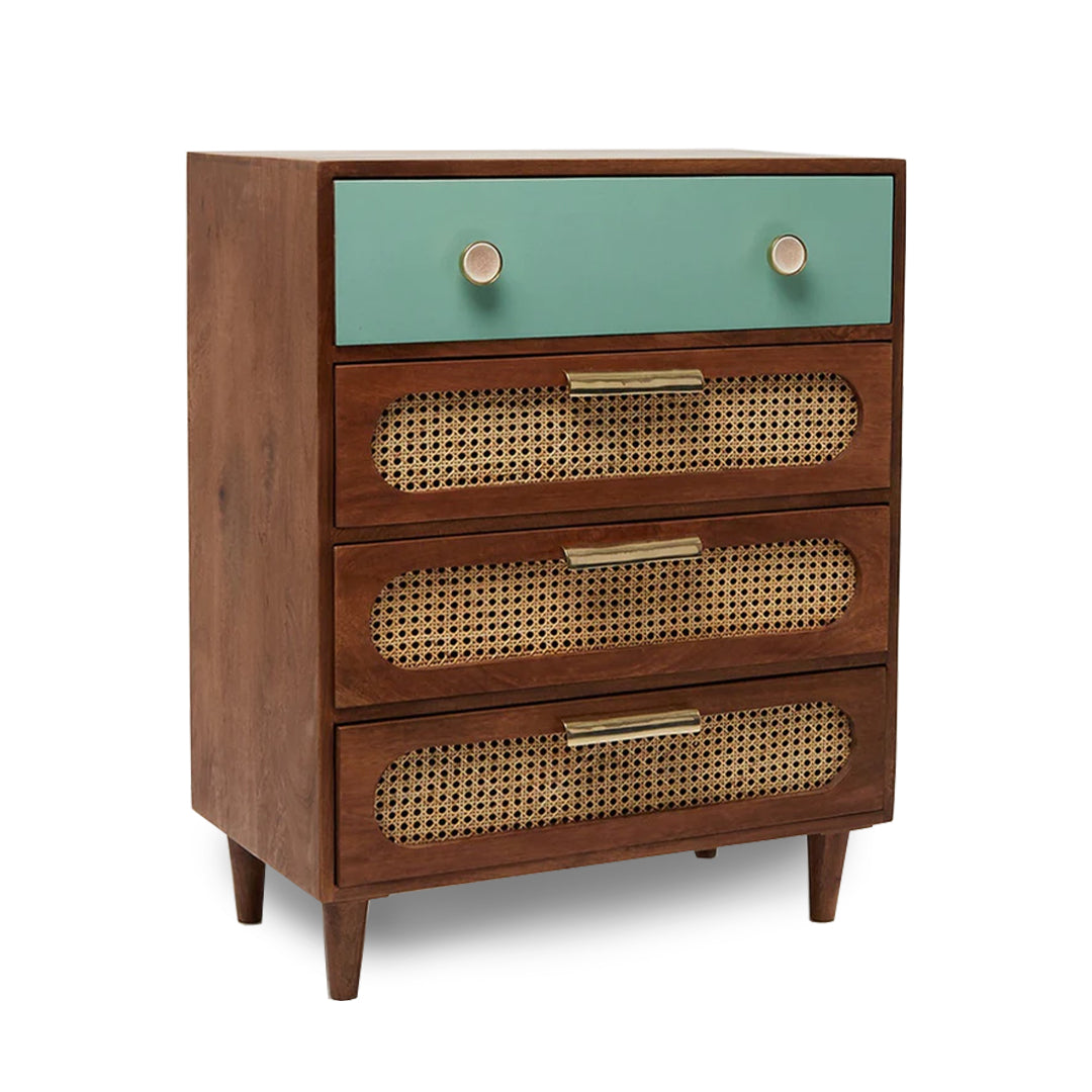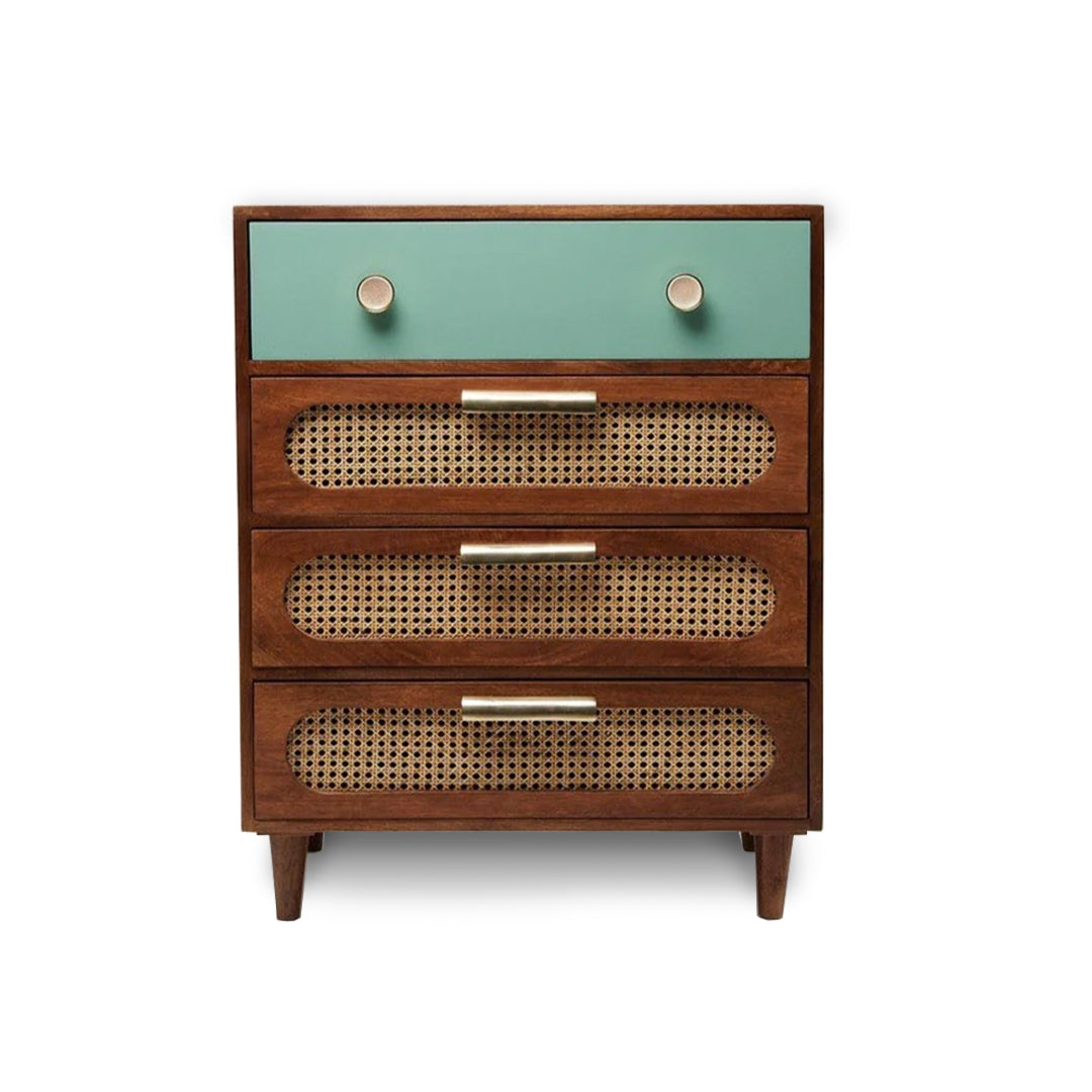 Classic 4-Drawer Wooden Chest / Cane Work Unique