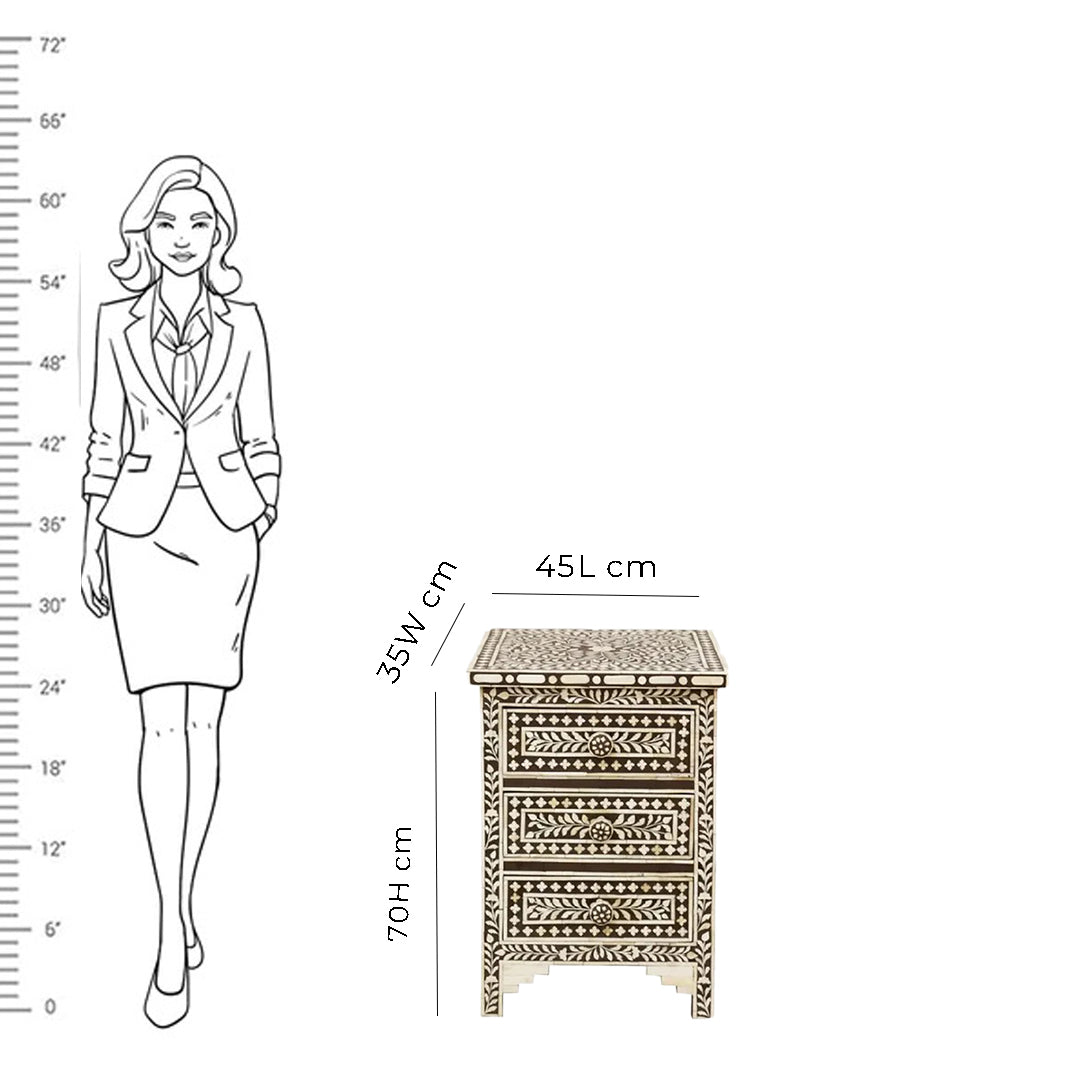 # Please Note:Ā You can also get this Handmade Bone Inlay Nightstand customized as per your needs. For More details, refer toĀ Customisation Page.Ā