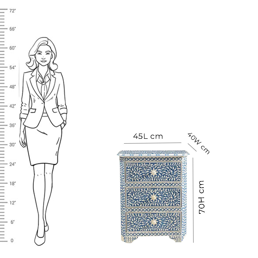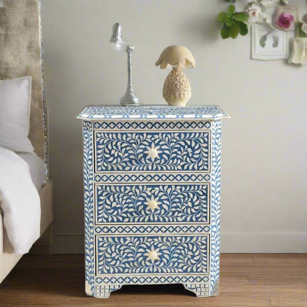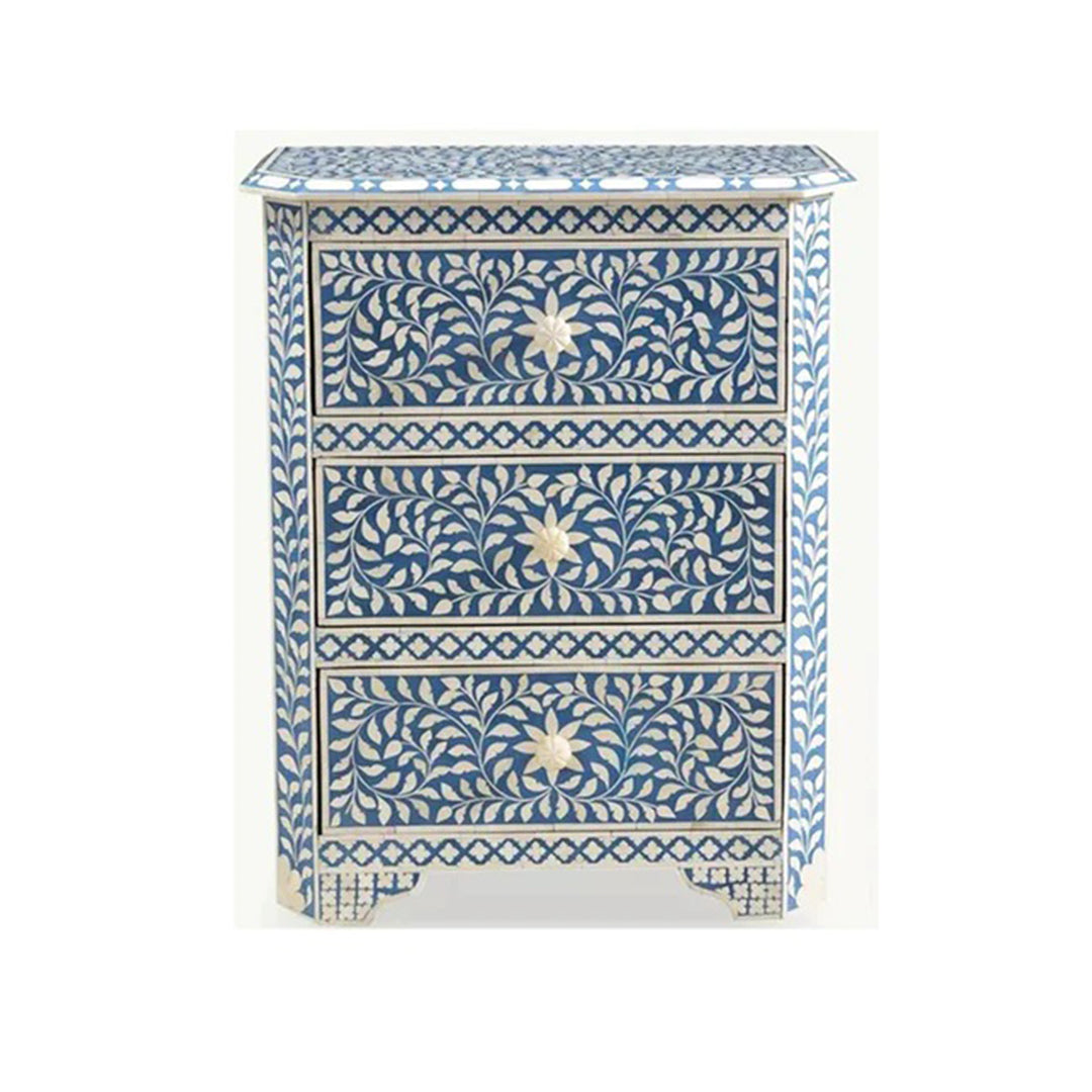 Handmade Customized Bone Inlay 3 Drawer Bedside Table