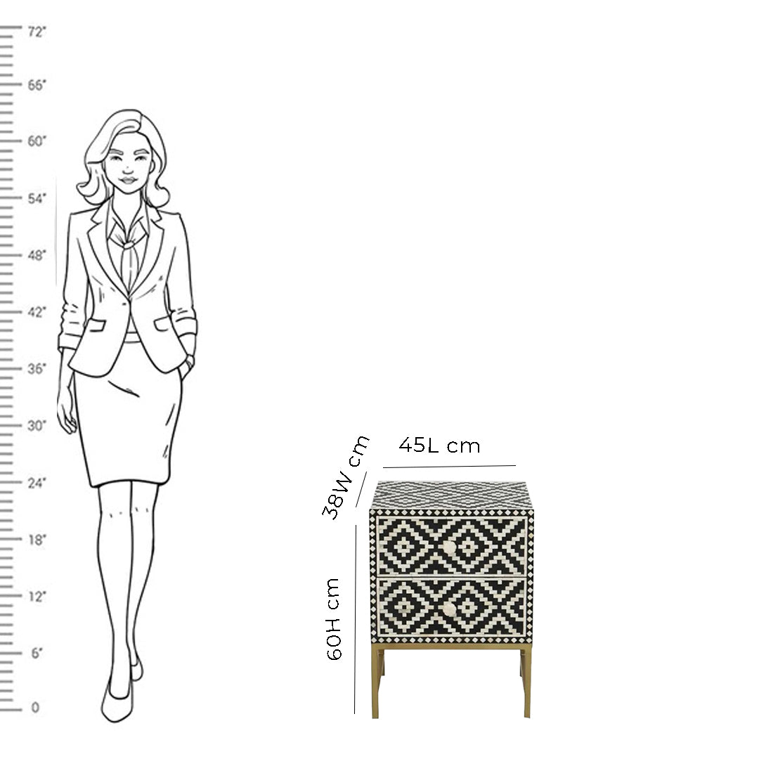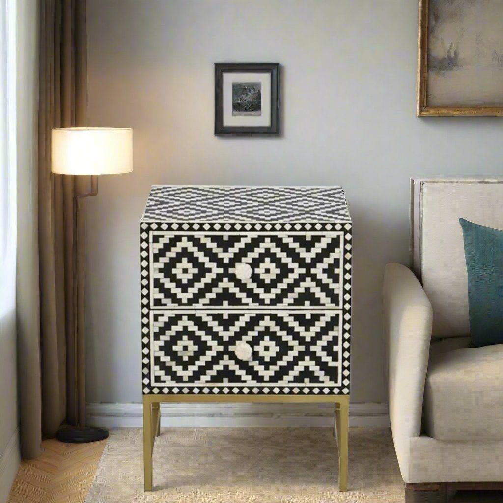 Handmade Customized Bone Inlay Two Drawer Bedside Table Best For Home And Office