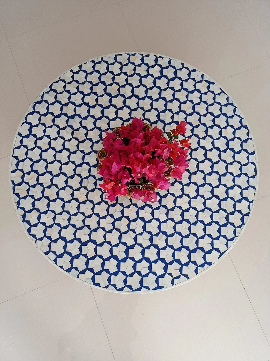 This captivating Coffee Table is a unique possession piece to be smitten with for years to come and is even more picturesque in this large size. This multifaceted Coffee Table can be used in a living room, bedroom, entry, or hallway. The bone inlay’s raveled design, coupled with the colorful resin background, allows this piece to add an exotic touch to any home decor. Made to Order. Thus, the customer owns a New Piece every time. This piece is hand-made by a skilled craftsman, slight irregularities in the resin and inlay may exist and because of this slight imperfections are to be celebrated and not considered to be flawed. The packaging of the product is done in a wooden box with proper cushioning to ensure that the product is delivered to you in its best condition. We use professional furniture packaging for the delivery of large furniture pieces.
