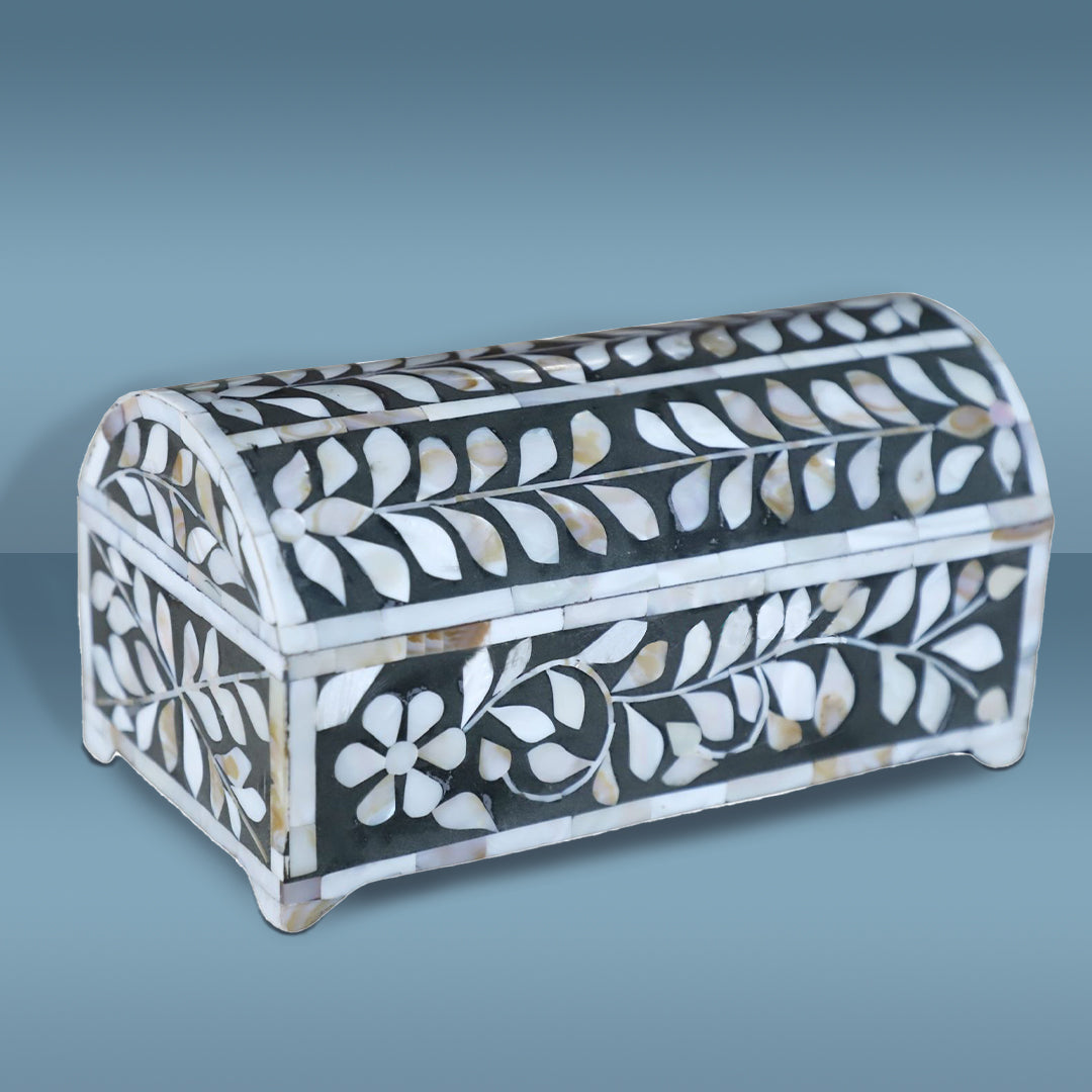 - This Jewelry Box is well-designed and handcrafted by our skilled artisans and is perfect for serving, decoration as well as gifting purposes. The art of MOP inlay is specific to the Rajasthan region of India, where this meticulous skill is handed down from generation to generation. When you make a purchase of this Jewelry Box, you support a local business and artisan.